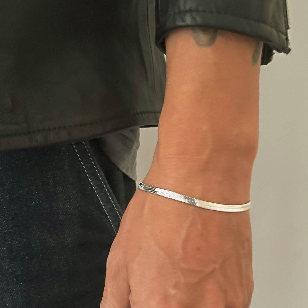 CReAMHuba不鏽鋼蛇鍊扁鍊中性男性手環手鍊(生日 禮物 送禮 禮盒)