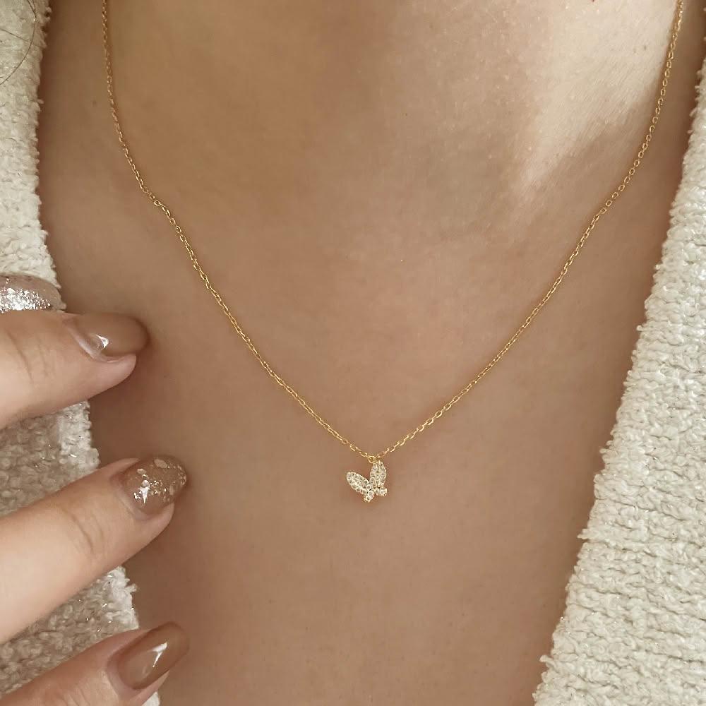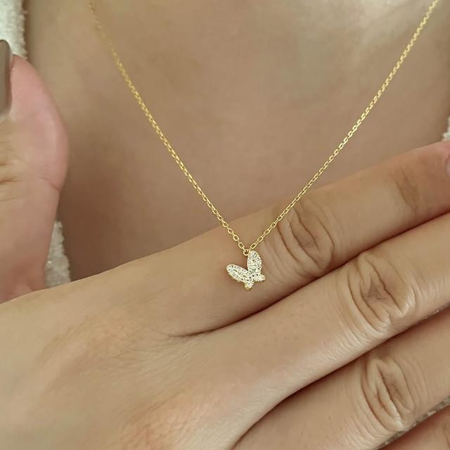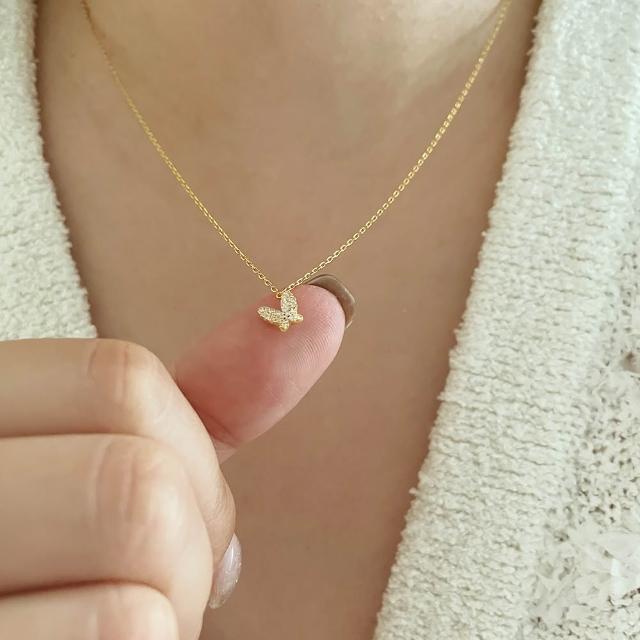 CReAMUna925純銀迷你蝴蝶碎鑽金色女項鍊項鏈(送禮 禮盒)