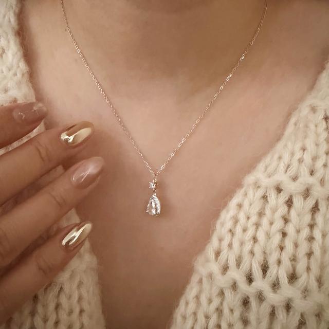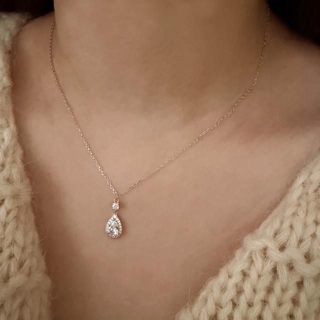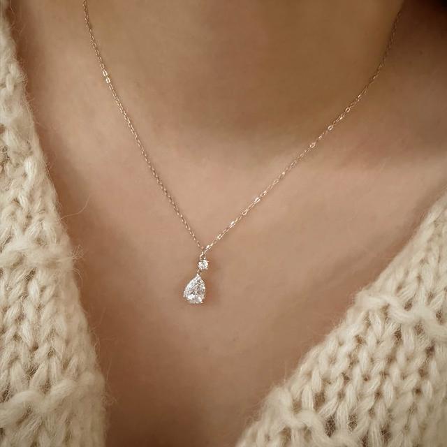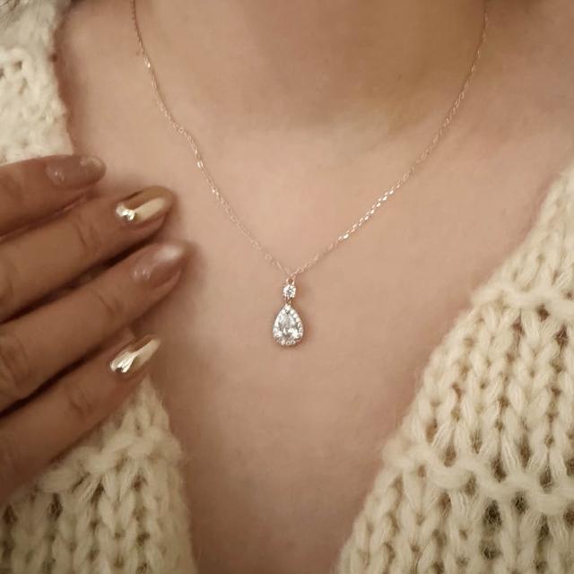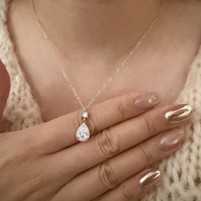 CReAMIsabella 925純銀輕奢水滴滿鑽亮鑽銀色女項鍊 項鏈 (生日 禮物 送禮 禮盒)