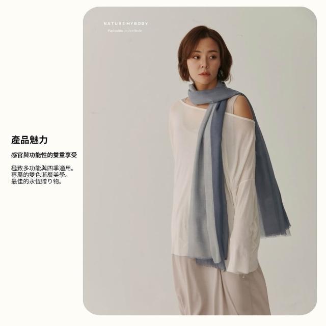 Nature My Body雙色漸層圍巾禮盒 純喀什米爾山羊絨披肩- Blue Horizon 灰藍色天空(100%Pashmina輕薄圍巾)