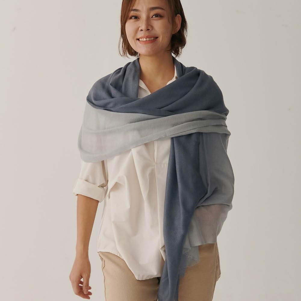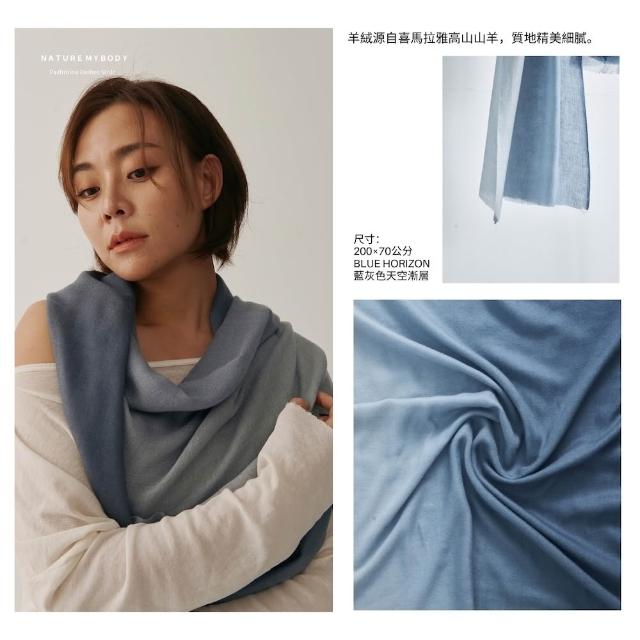 Nature My Body雙色漸層圍巾禮盒 純喀什米爾山羊絨披肩- Blue Horizon 灰藍色天空(100%Pashmina輕薄圍巾)