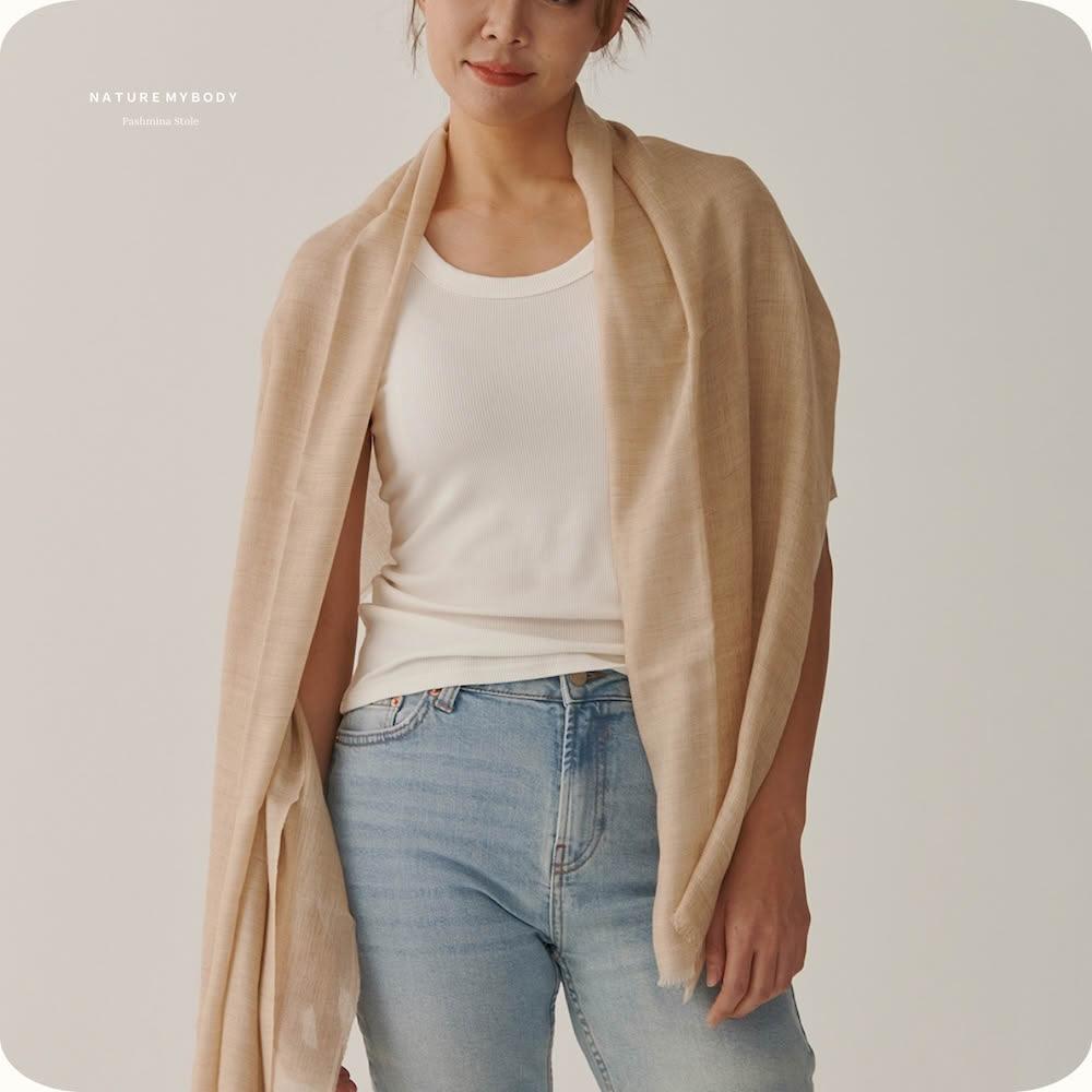 Nature My Body多層次Y形編織系列 純喀什米爾山羊絨披肩-Sandstone Serenade 米色沙岩(100%Pashmina圍巾)