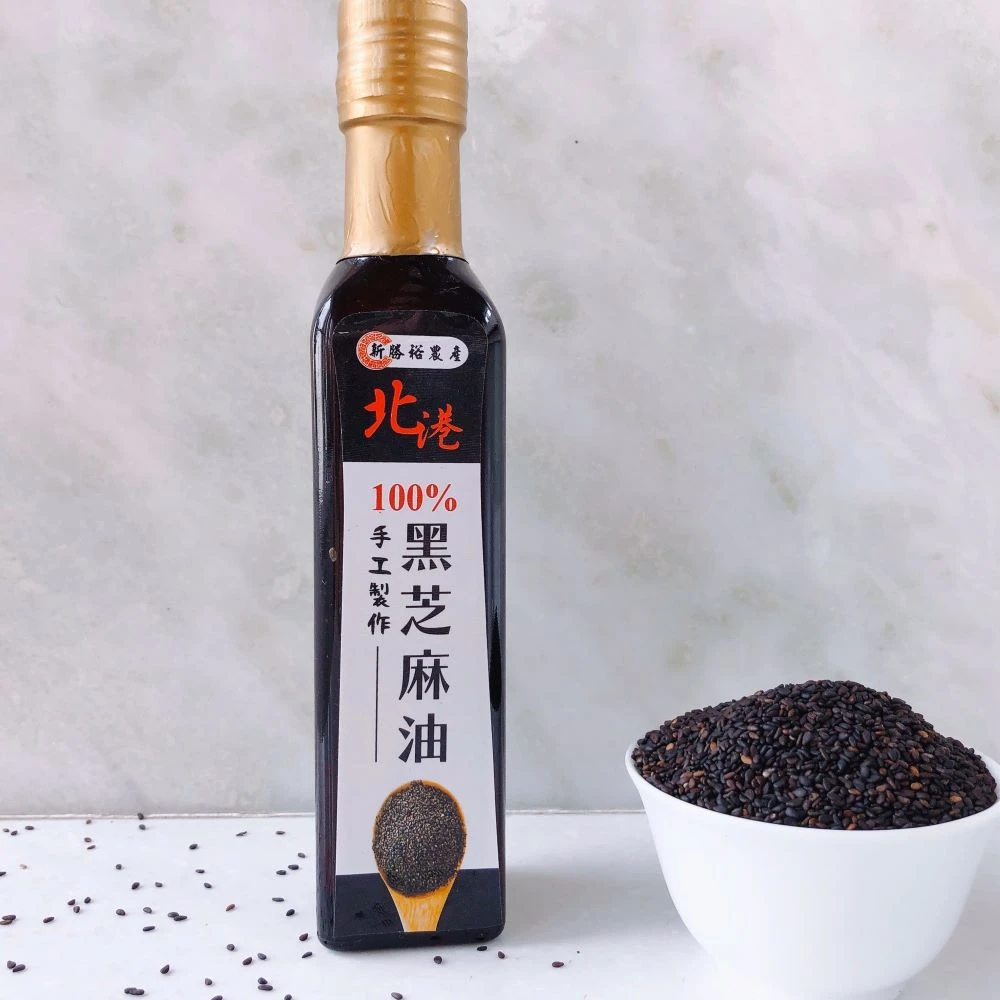 北港新勝裕初榨冷壓黑麻油,250ml玻璃瓶裝,附精美禮盒!