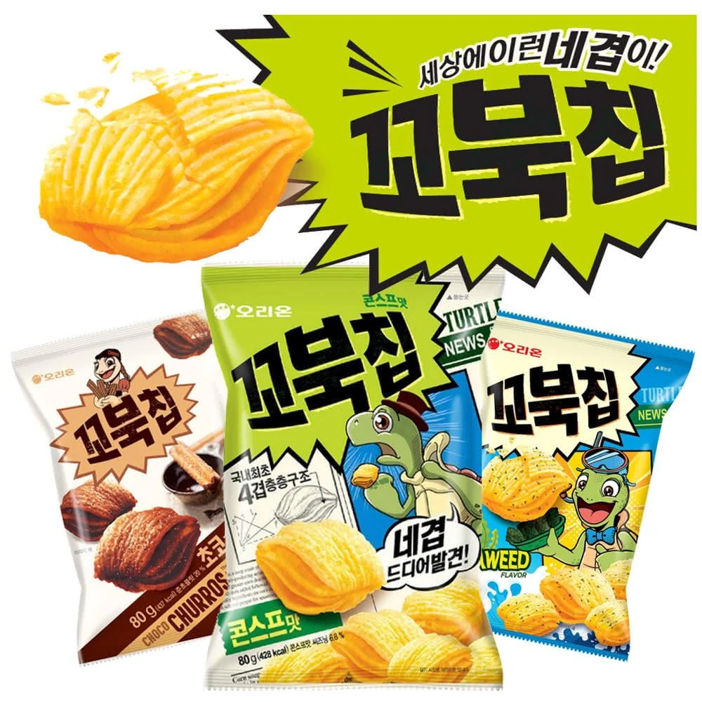 好麗友韓國 好麗友 四層 烏龜 玉米脆片 餅乾 80g 原味 巧克力 海苔
