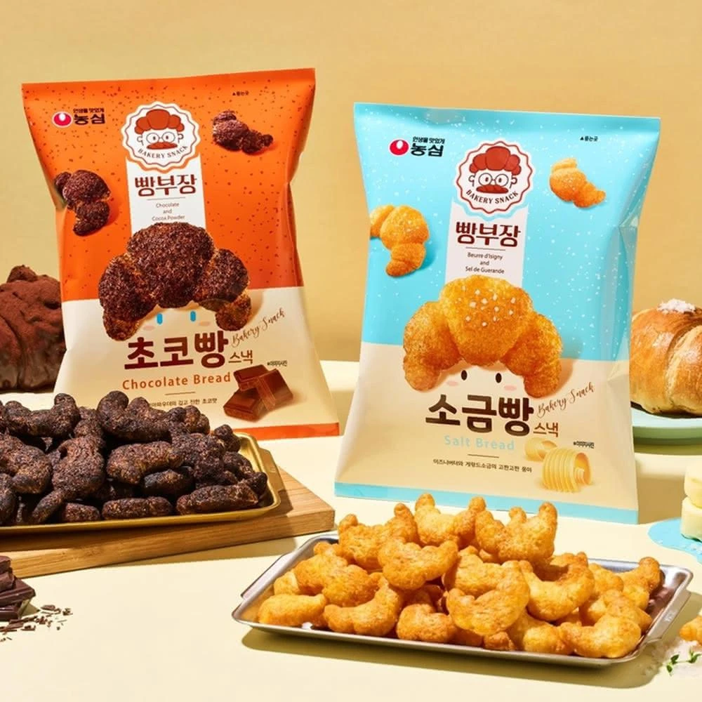 CHARA 微百貨韓國 農心 麵包部長 牛角麵包造型餅乾 55g 奶油鹽味 可可 巧克力