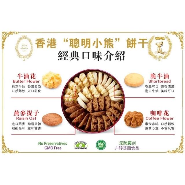 CHARA 微百貨短效期 6/27 特價 香港 珍妮餅家 聰明小熊 曲奇餅乾 禮盒 640g 附提袋 (四味 紳士小熊版) 母親節