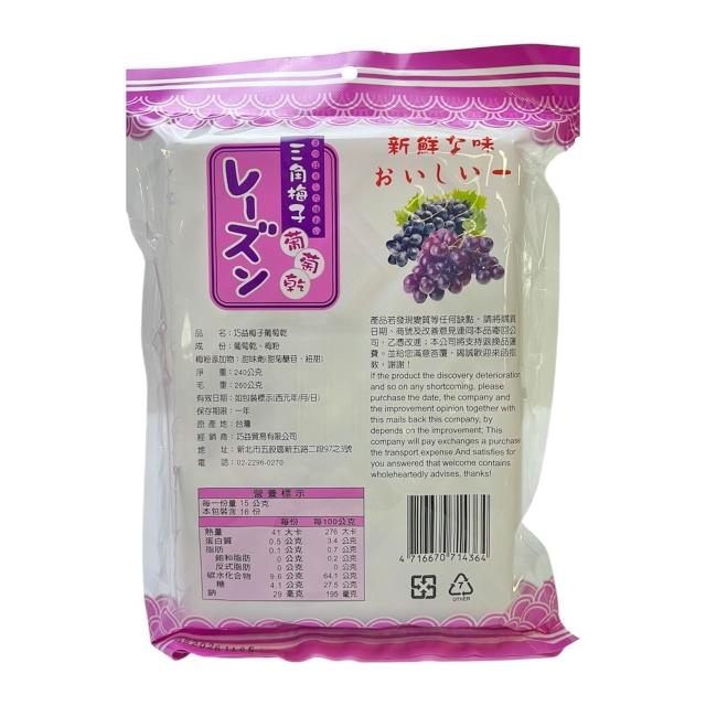 CHARA 微百貨巧益 三角包 梅子 葡萄乾 240g 獨立包裝