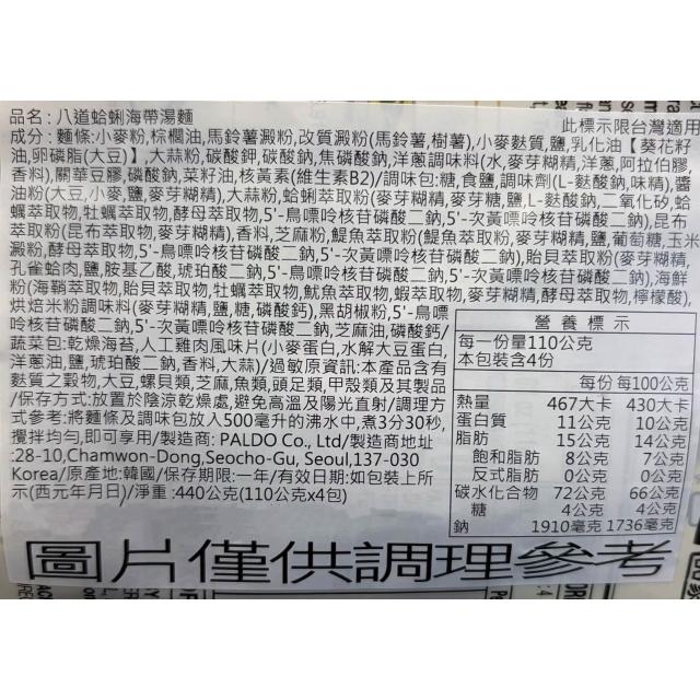 CHARA 微百貨韓國 八道 蛤蜊海帶湯麵 4包入/袋