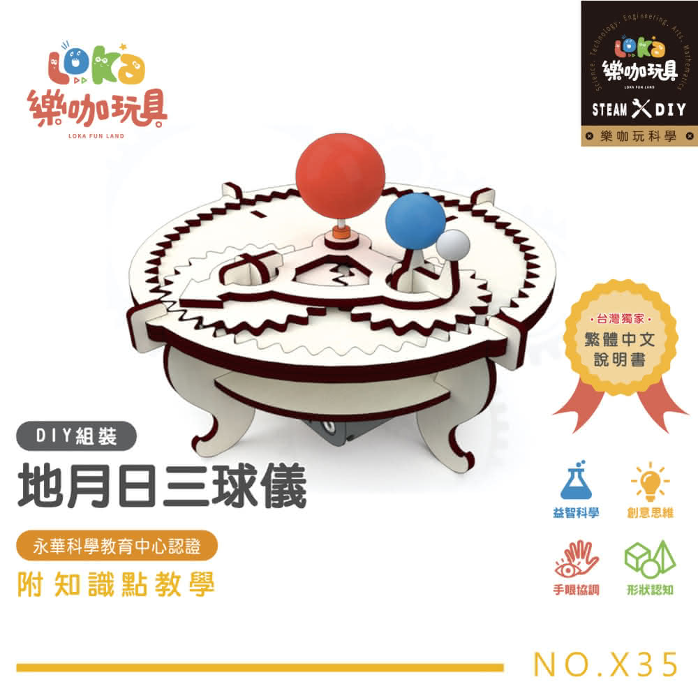 繁體中文 精緻包裝 地月日三球儀 DIY科學材料包 M X35科學玩具/Steam科學教育/DIY玩具/科學教具/樂咖玩科學