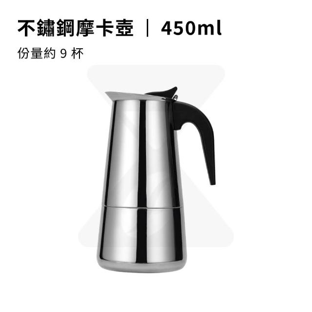 時光萃豆不鏽鋼摩卡壺-450ml(咖啡摩卡壺 摩卡咖啡壺 手沖咖啡壺 義式壺 摩卡壺 咖啡壺 濃縮咖啡壺 咖啡用具 露營咖啡壺)