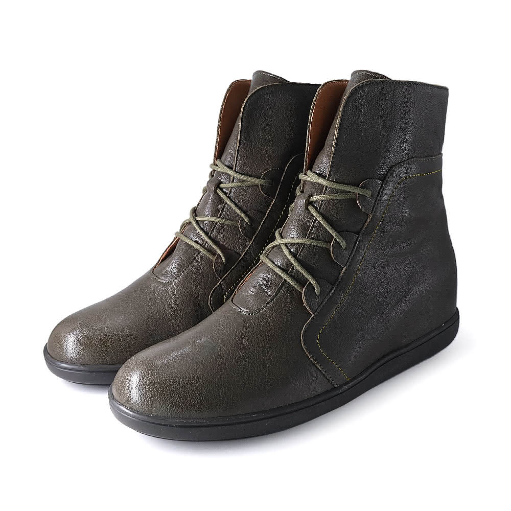 DK 高博士素面綁帶空氣真皮中筒女靴 87-2141-30 綠色