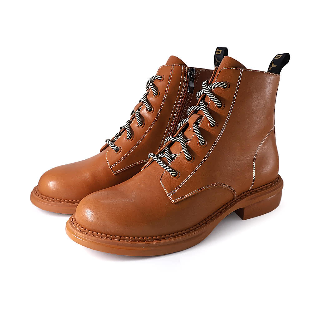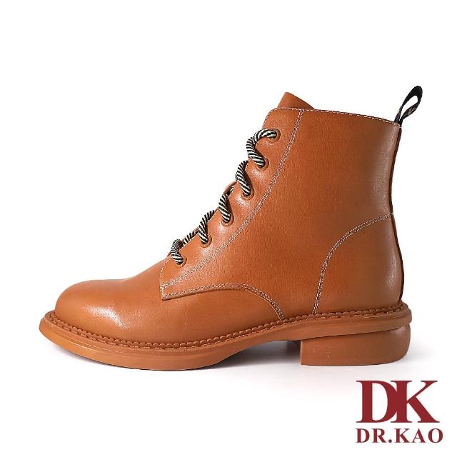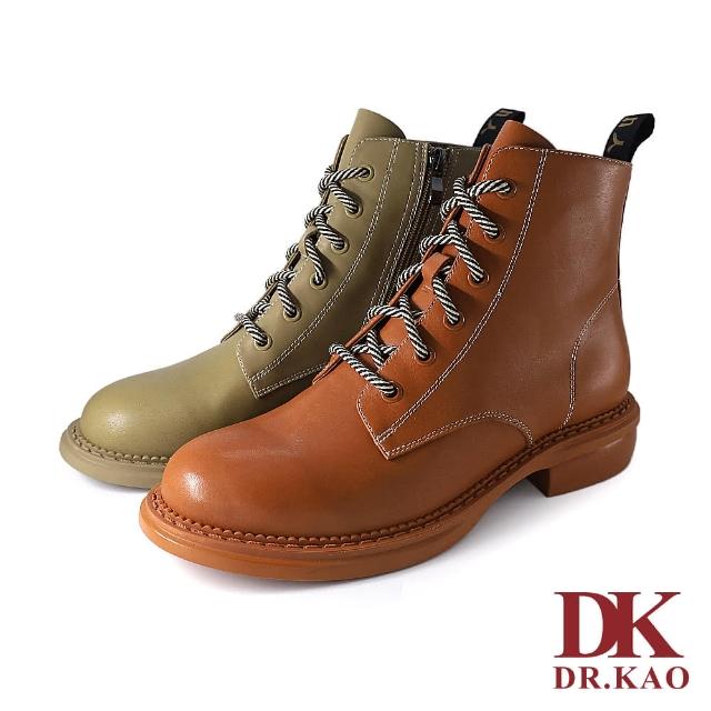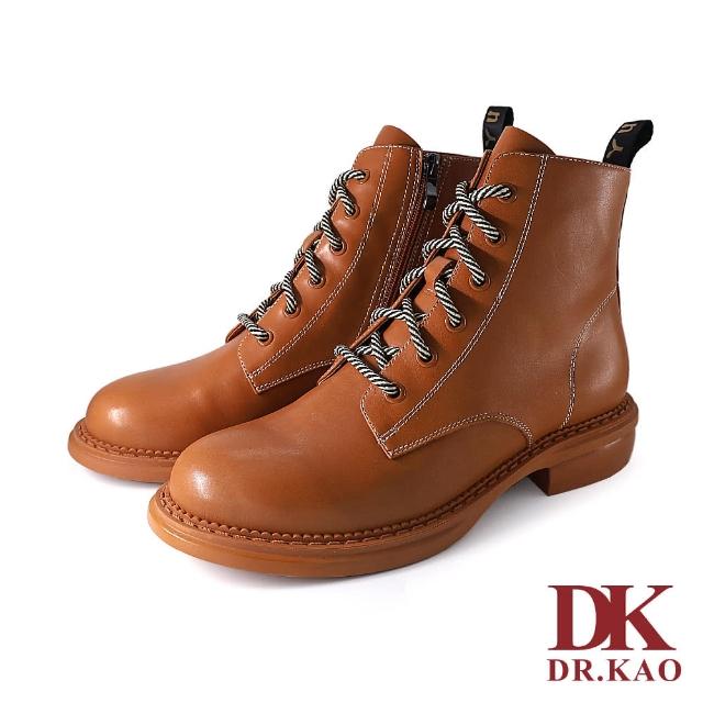 DK 高博士率性綁帶側拉鏈中筒氣墊女靴 71-2167-55 棕色