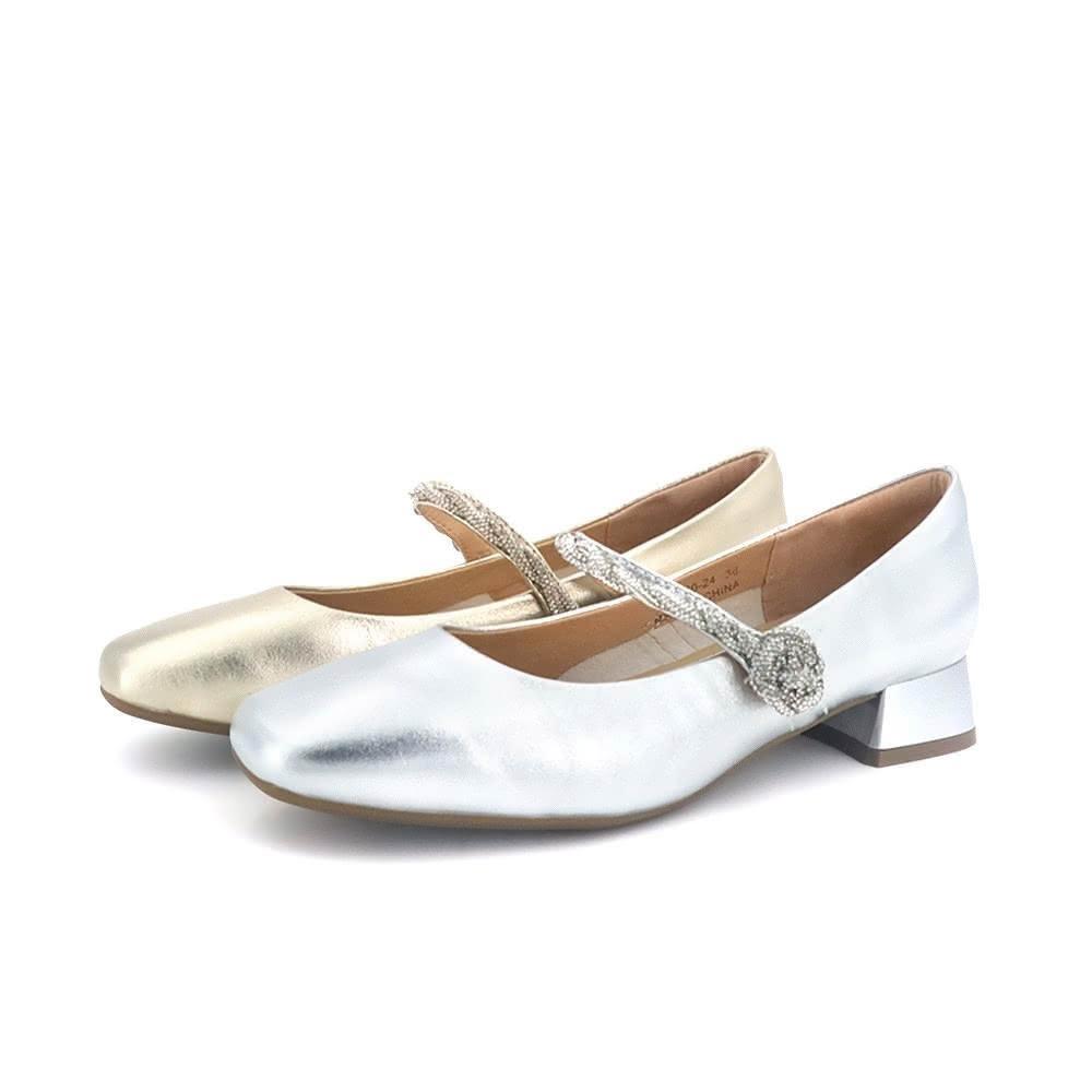 DK 高博士花鑽編織瑪莉珍方頭低跟鞋 71-4360 共2色 金色 銀色
