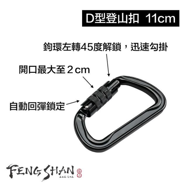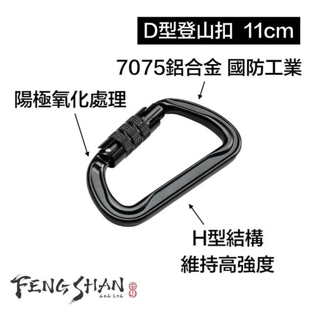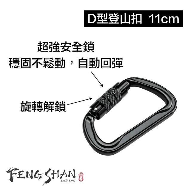 FENGSHAN 丰山帶鎖D型登山扣 11cm 最高等級鋁合金 自動鎖(功能快扣 戶外工具 掛扣)