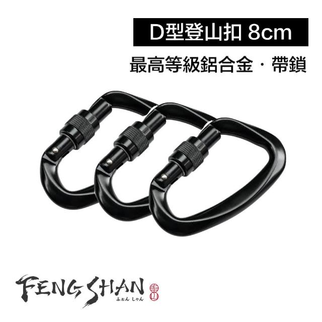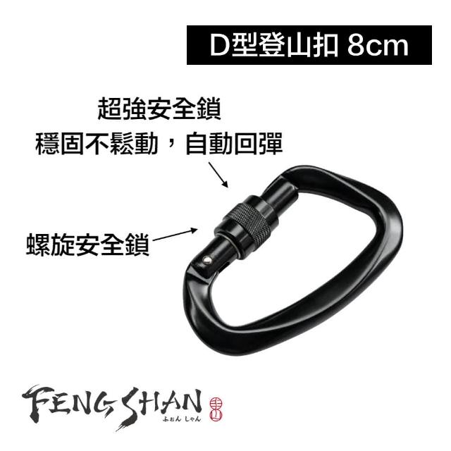 FENGSHAN 丰山帶鎖D型登山扣 8cm 最高等級鋁合金(功能快扣 戶外工具 掛扣)