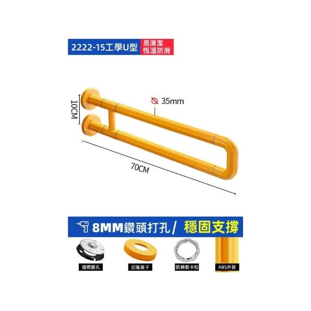 Vimi維米 安全扶手 無障礙扶手 U型固定扶手 恆溫防轉動 浴室扶手 老人安全欄杆(扶手70公分)