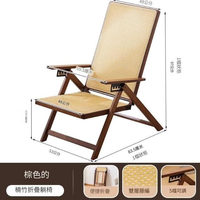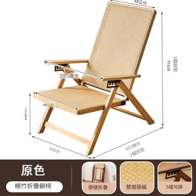 Vimi維米 藤編躺椅 折疊午休椅子 可坐躺兩用 辦公室休閒椅 老人陽臺午睡涼椅(可坐可躺藤椅)
