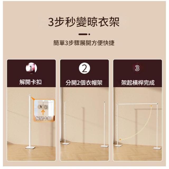 兩用衣帽架展開變晾衣架
