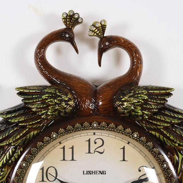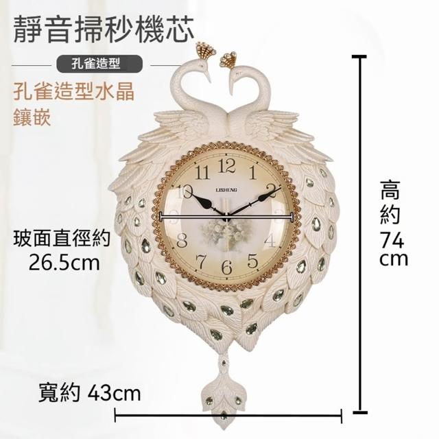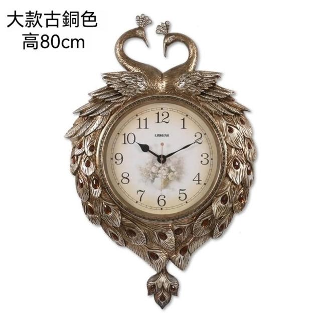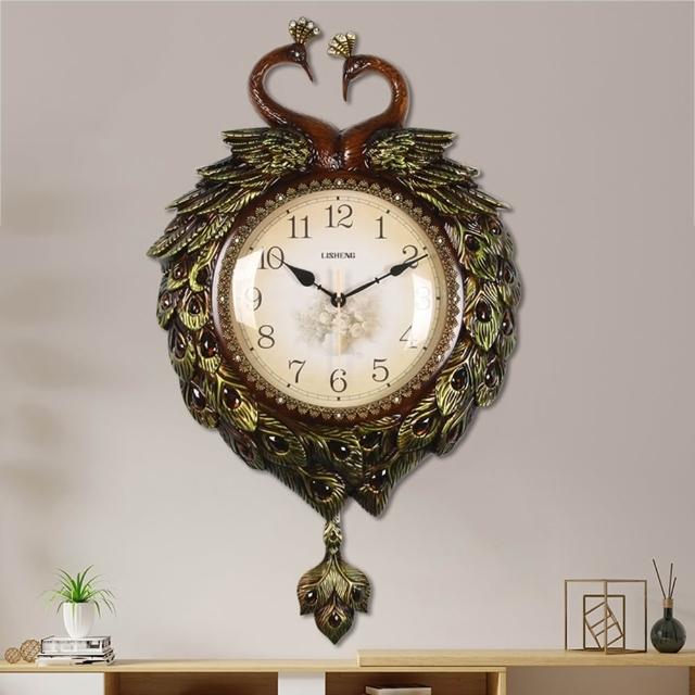Vimi維米 歐式孔雀掛鐘 靜音掃秒石英鐘 客廳臥室兩用 輕奢風格 浮雕工藝錶盤