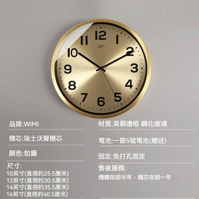 Vimi維米 輕奢黃銅靜音掛鐘 客廳臥室時尚石英鐘 16英吋 瑞士沃聲靜音機芯 無聲掃秒 簡約創意設計 附贈安裝配件