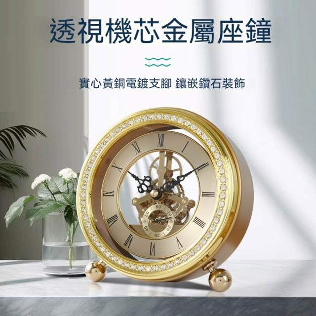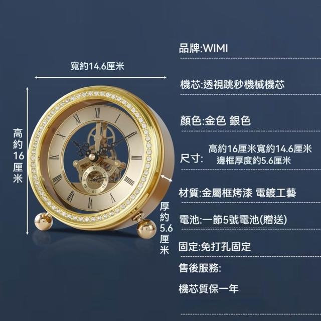 Vimi維米 輕奢水晶座鐘 手工鑲嵌 透視機芯 烤漆電鍍工藝 靜音掃秒設計 客廳書房輕奢擺飾