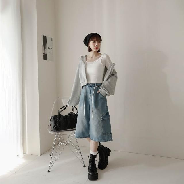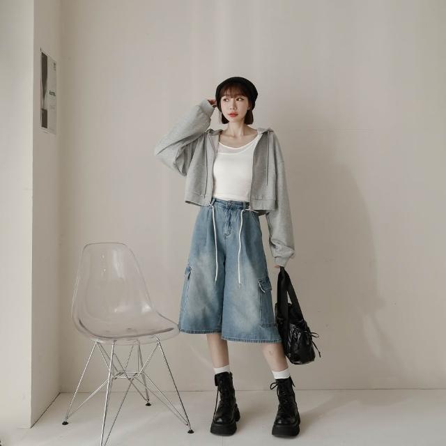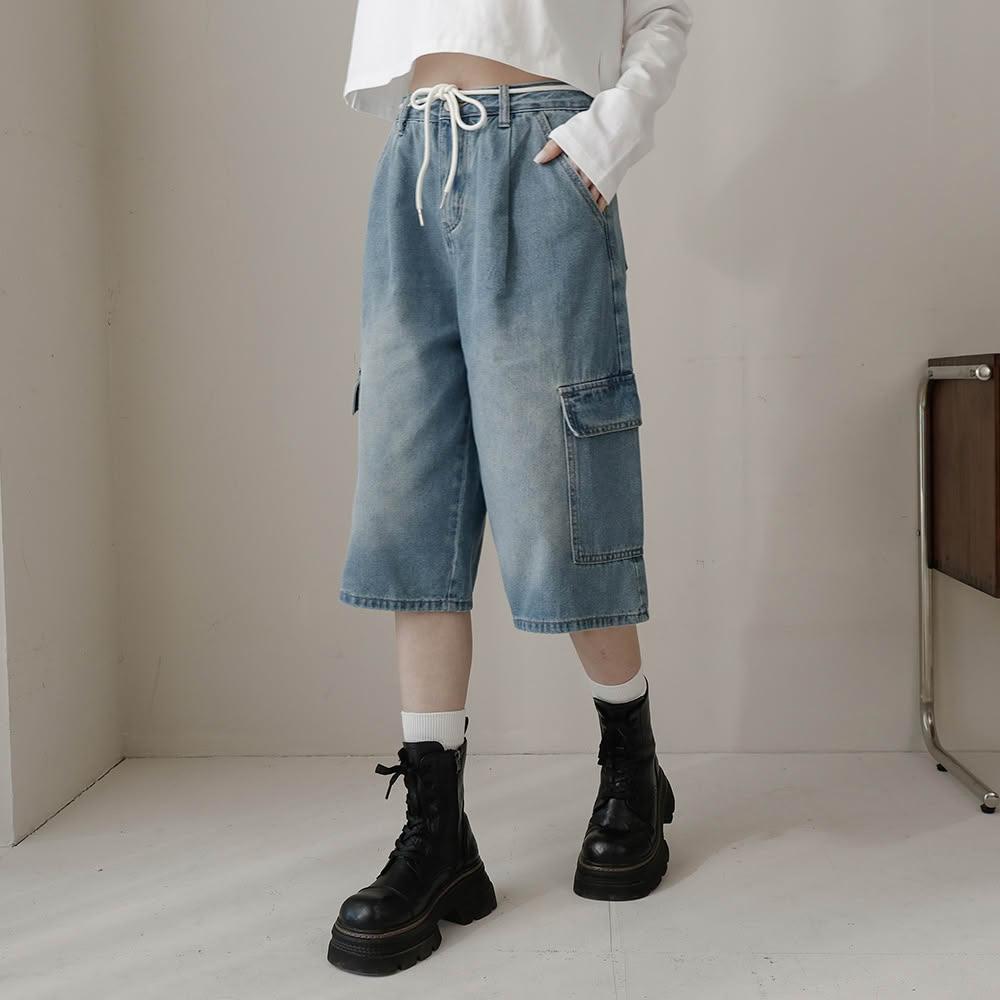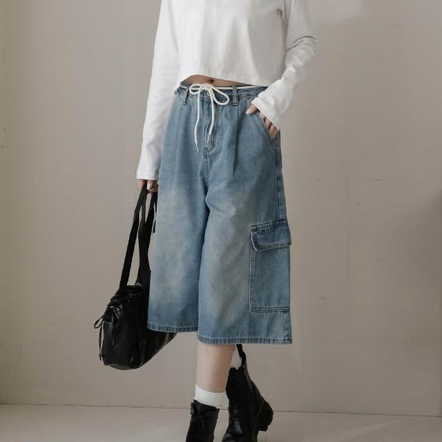 QueenshopQUEENSHOP_ S 女裝 低腰復古附綁繩牛仔七分褲 S/M/L 現+預 04011801