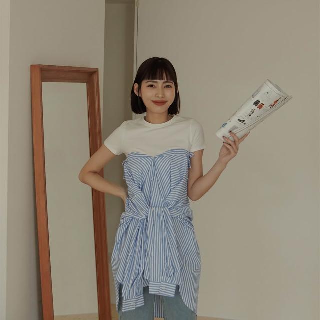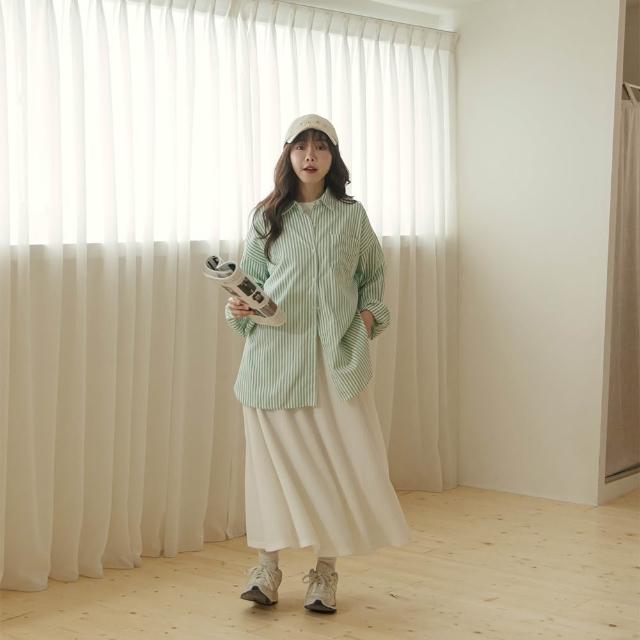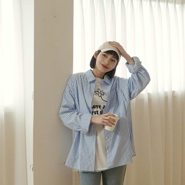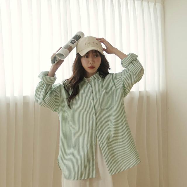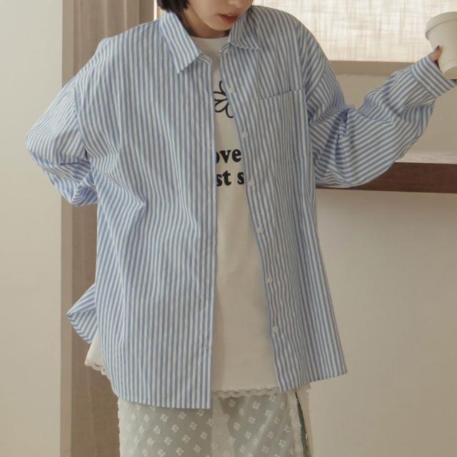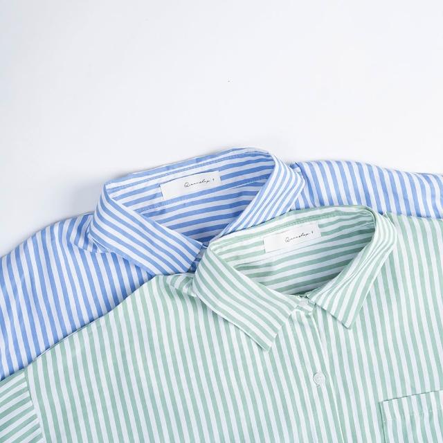 QueenshopQUEENSHOP_ S 女裝 長袖 前單口袋直條紋寬版襯衫 兩色售 現+預 01025542