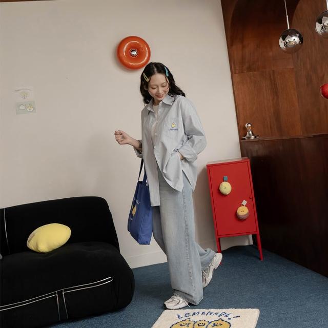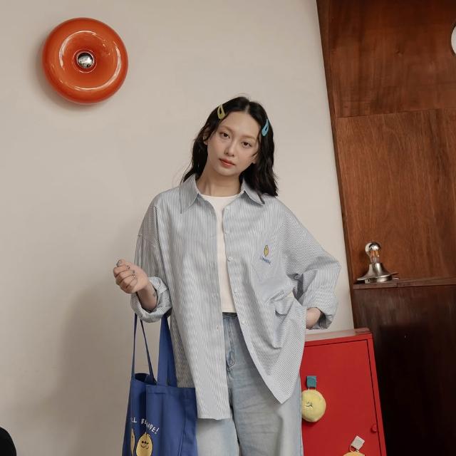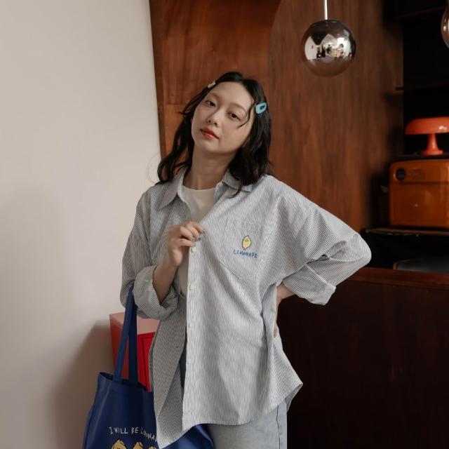 QueenshopQUEENSHOP_ S 女裝 聯名 Second Morning 檸檬刺繡口袋條紋襯衫 現+預 01025613