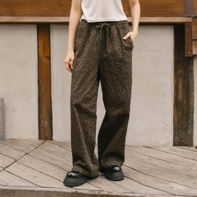 QueenshopQUEENSHOP_ S 女裝 豹紋抽繩設計直筒長褲 S/M/L 現+預 04101971