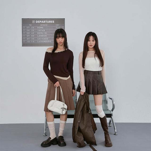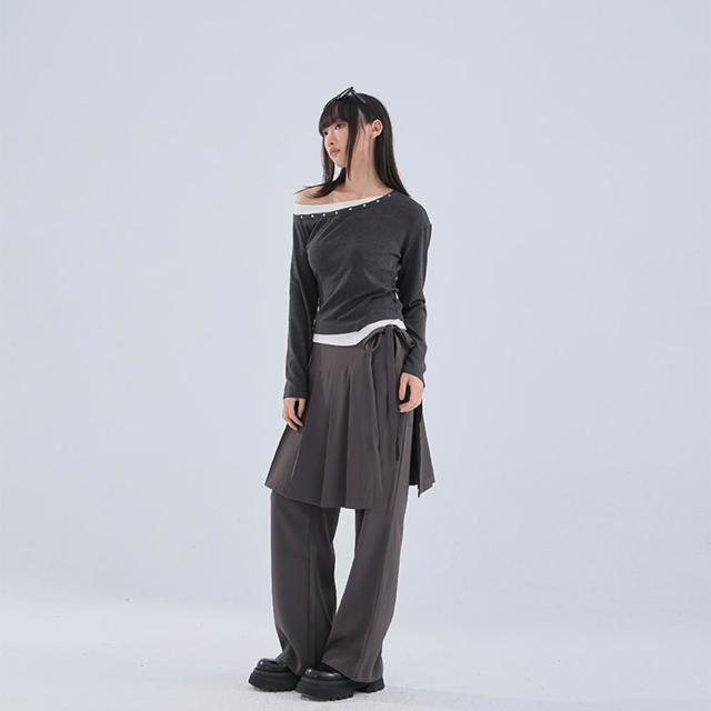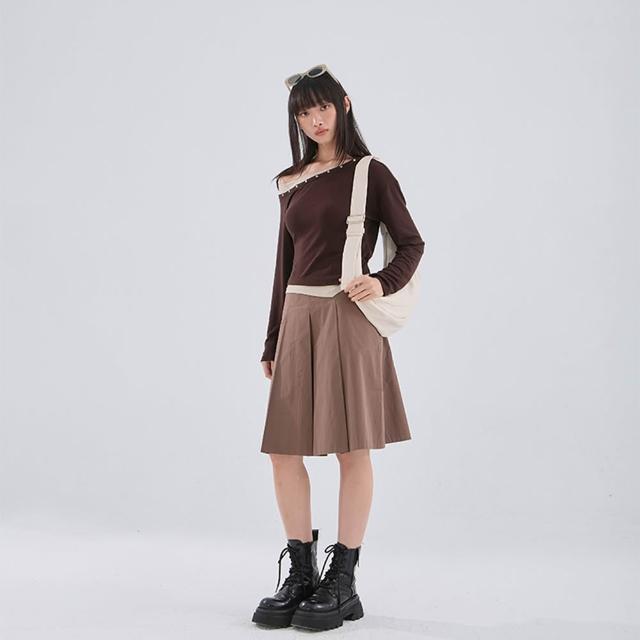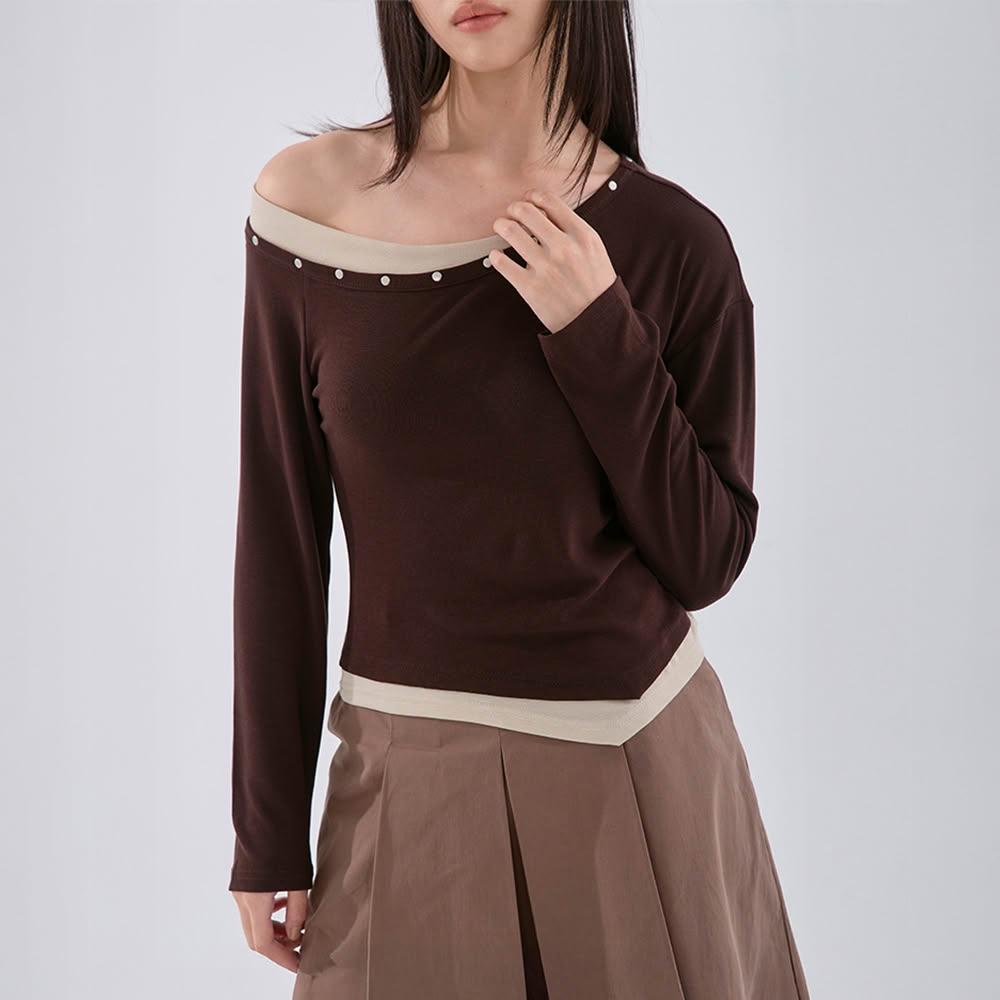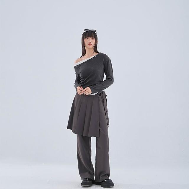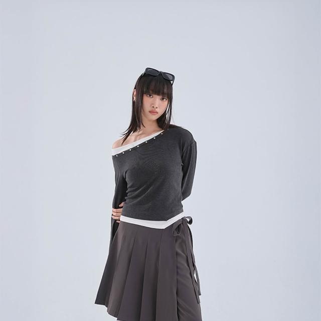 - 不對稱斜肩設計 也可拉作一字領