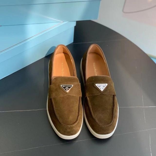 全真皮簡約舒適圓頭套腳樂福鞋女士百搭厚底懶人鞋(三色可選)