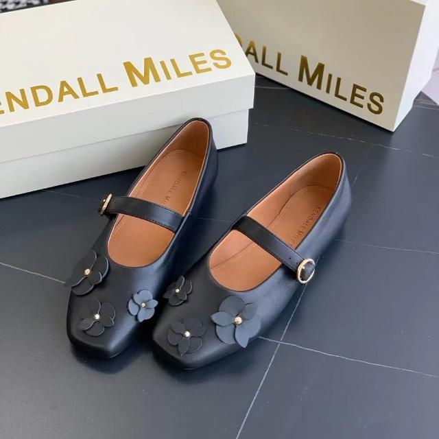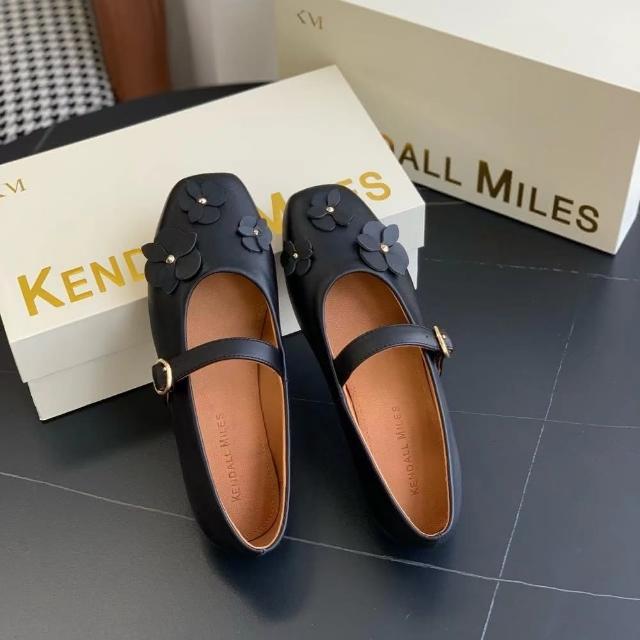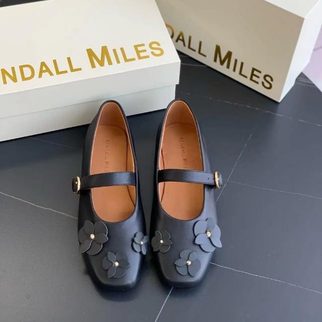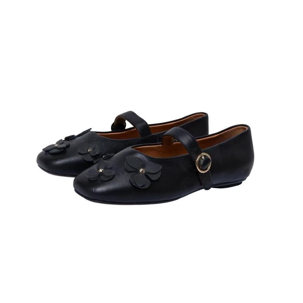 歐美正品軟羊皮時尚百搭花朵瑪麗珍女鞋方頭搭扣休閒平底鞋(兩色可選)