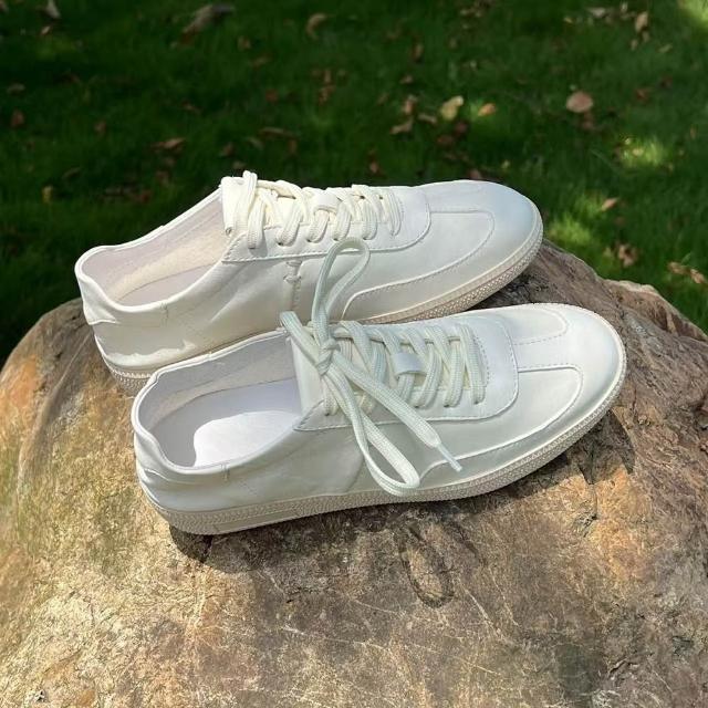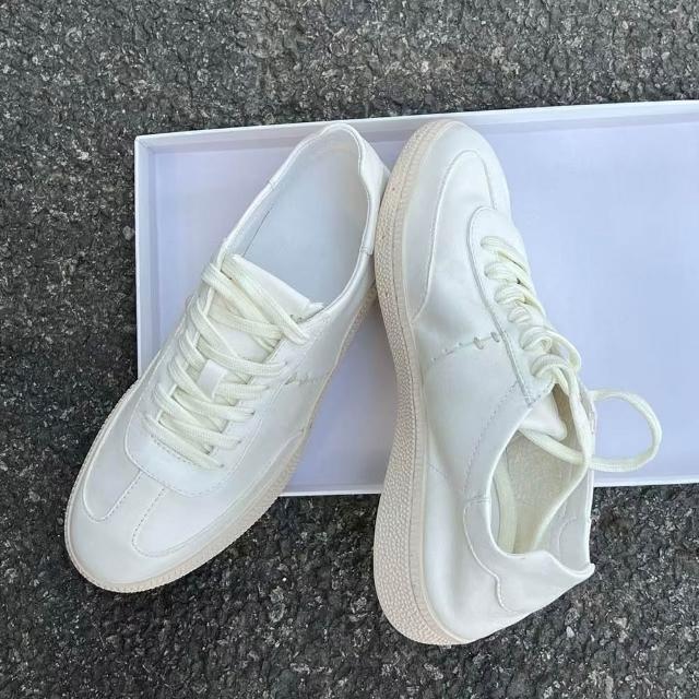 全真皮簡約舒適百搭綁帶休閒鞋圓頭超軟女鞋子小白鞋