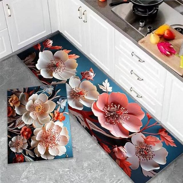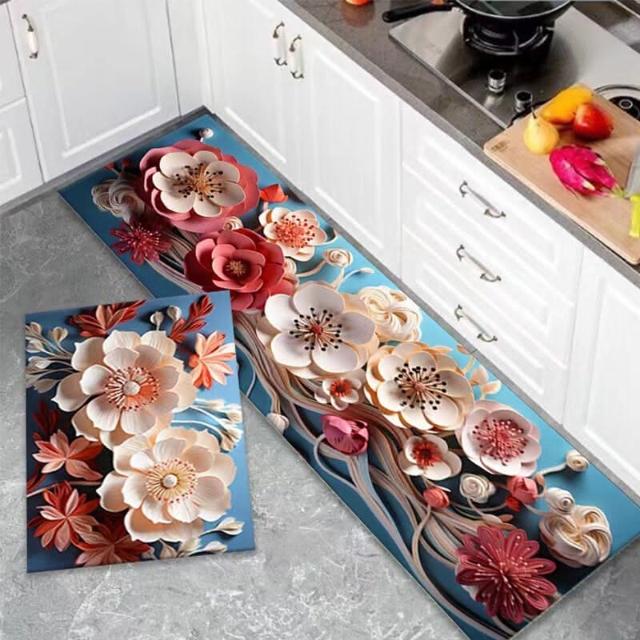 40x120cm 跨國花朵矽藻泥廚房地墊 防滑墊吸水 矽藻土軟地墊