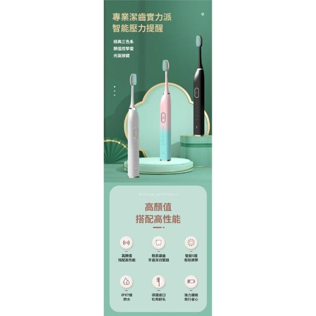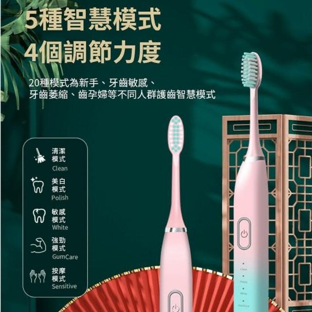 漸變色超聲波電動牙刷 15模式 成人家用超音波充電式男女軟 電動牙刷(USB充電防水電動牙刷)