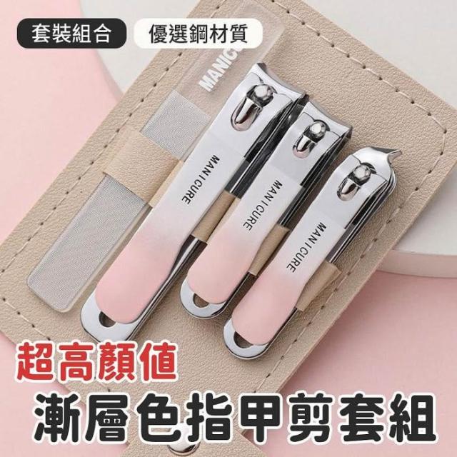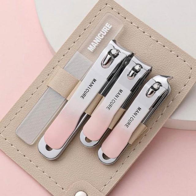 漸層粉指甲剪4件組 家用指甲剪 指甲刀 便攜式修甲護理套裝