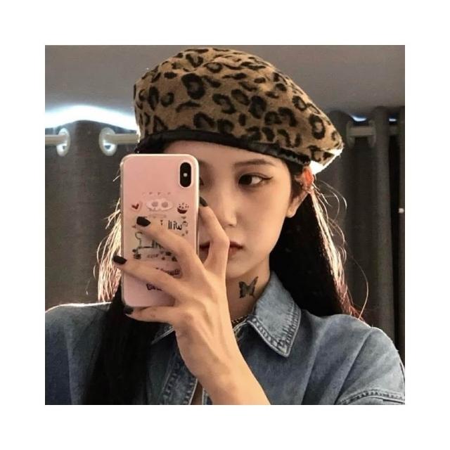 畫家帽 貝蕾帽 豹紋 現貨 豹紋帽子 毛呢 皮邊 辣妹 貝雷帽 帽子 蘑菇帽 修飾頭型 歐美 個性 SC015