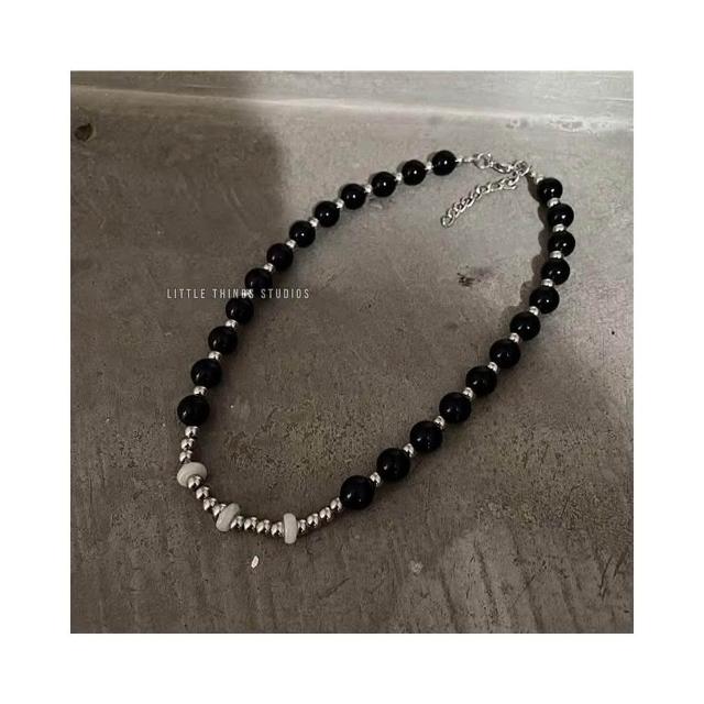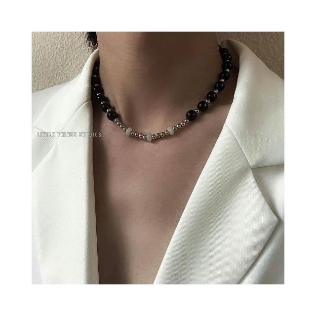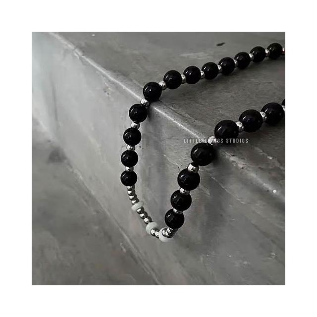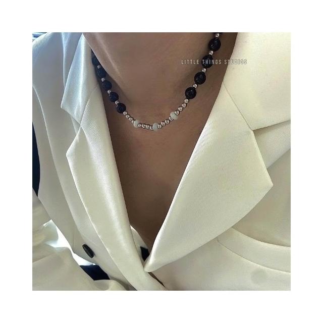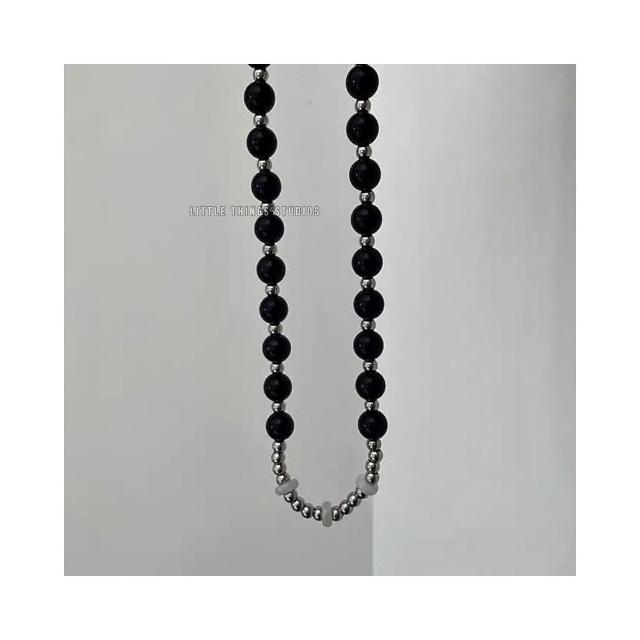 曜石黑 珍珠項鍊 人造珍珠 黑珍珠 項鍊 現貨 黑珍珠 項鍊 鈦鋼 串珠 潮流 SN063