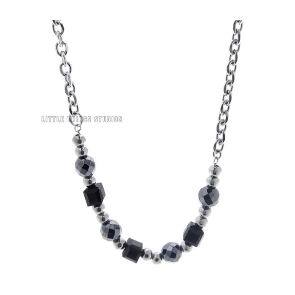 串珠項鍊 鈦鋼項鍊 珠珠項鍊 現貨 極地黑 串珠項鍊 男生項鍊 切面 方塊 拼接 黑色 SN014