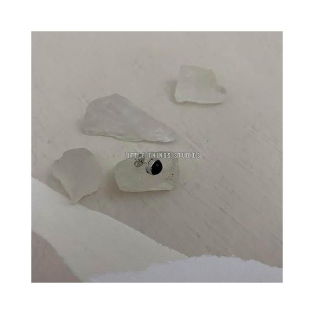 黑曜石礦石耳環 耳釘 圓形 黑色 通體純銀 S925 黑瑪瑙 SE012
