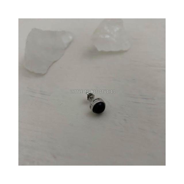 黑曜石礦石耳環 耳釘 圓形 黑色 通體純銀 S925 黑瑪瑙 SE012
