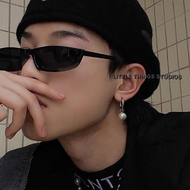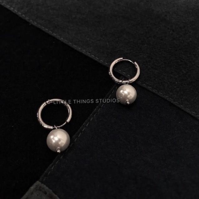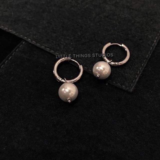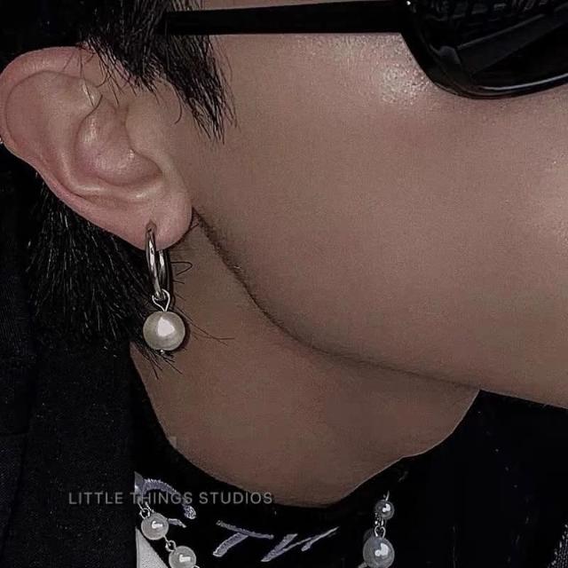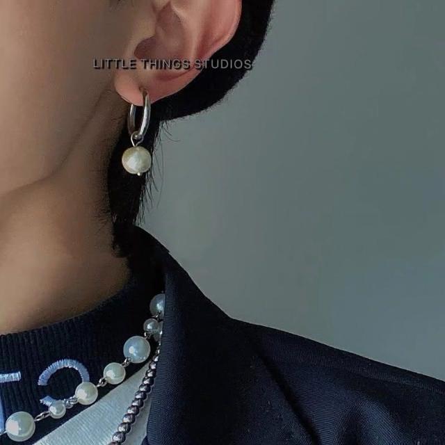珍珠鈦鋼耳圈 耳環 不銹鋼 潮流 圓圈 飾品 男 女