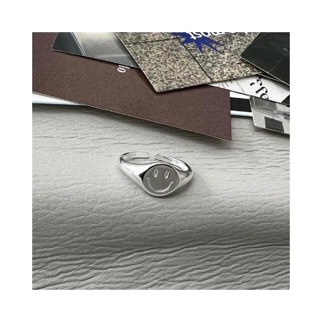 現貨 實拍 鋼印笑臉 戒指 微笑 男戒 通體純銀 s925 SR003