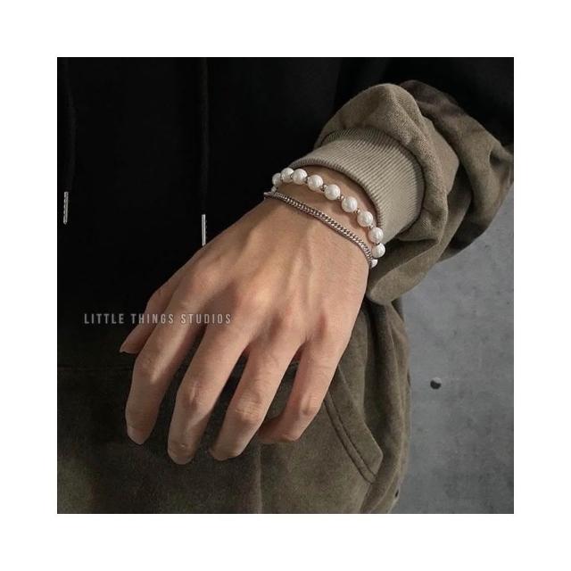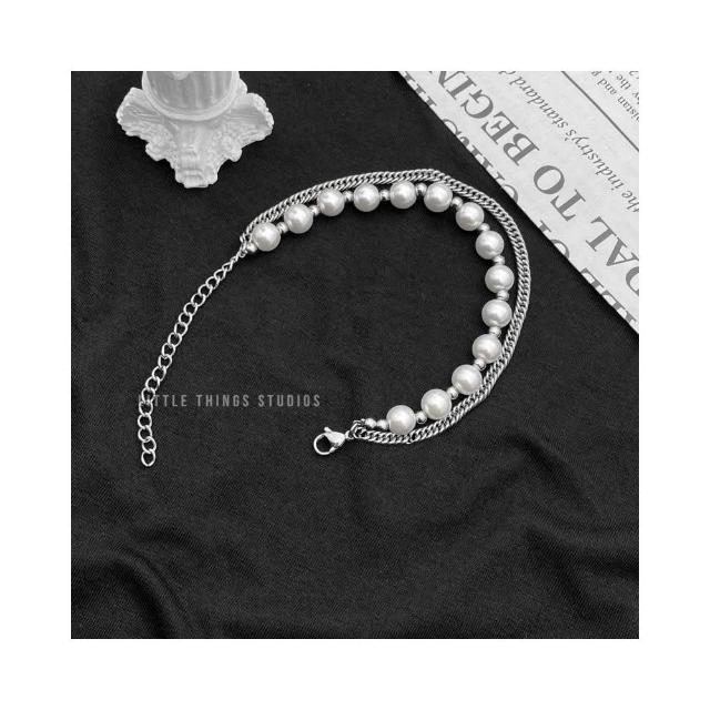 現貨 雙層疊戴 鈦鋼 珍珠 手鏈 疊戴 串珠 男 手鍊 SW019
