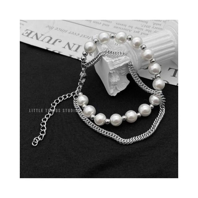 現貨 雙層疊戴 鈦鋼 珍珠 手鏈 疊戴 串珠 男 手鍊 SW019