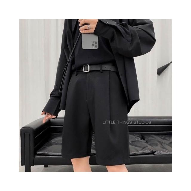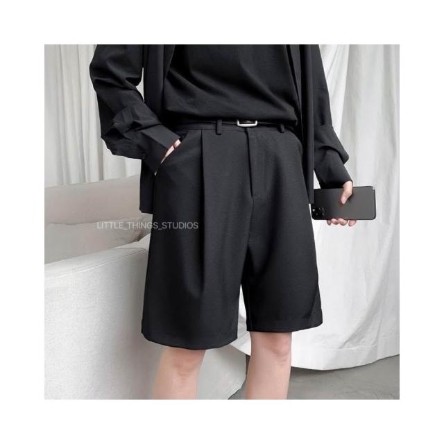 現貨 打褶西裝短褲 黑 五分褲 素面 百搭 黑色 西裝褲 男短褲 SP010