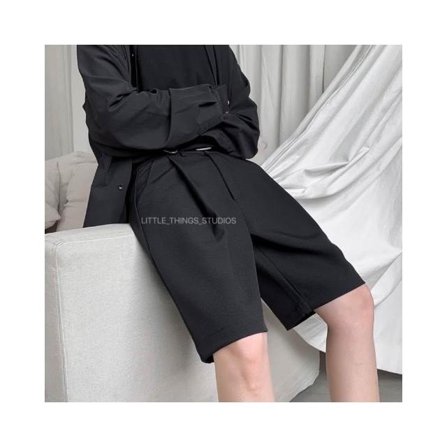 現貨 打褶西裝短褲 黑 五分褲 素面 百搭 黑色 西裝褲 男短褲 SP010