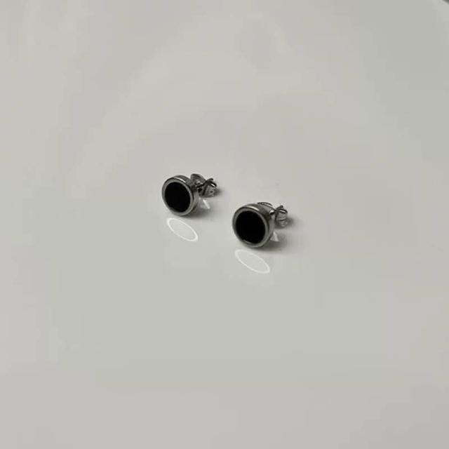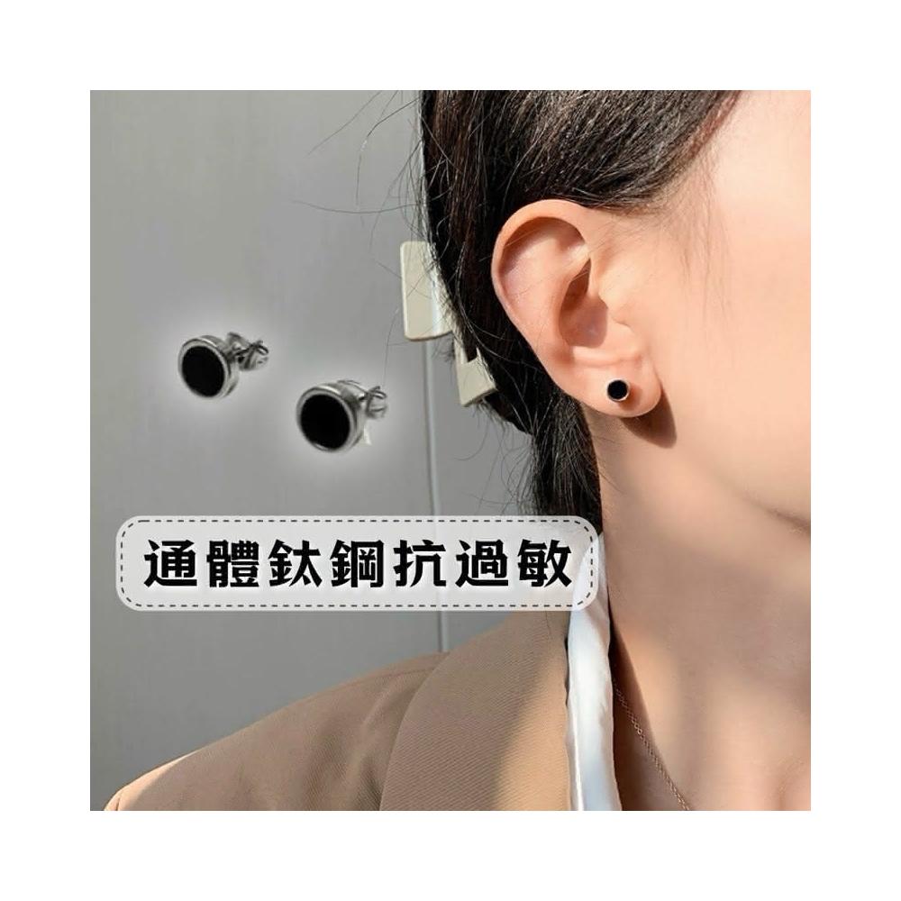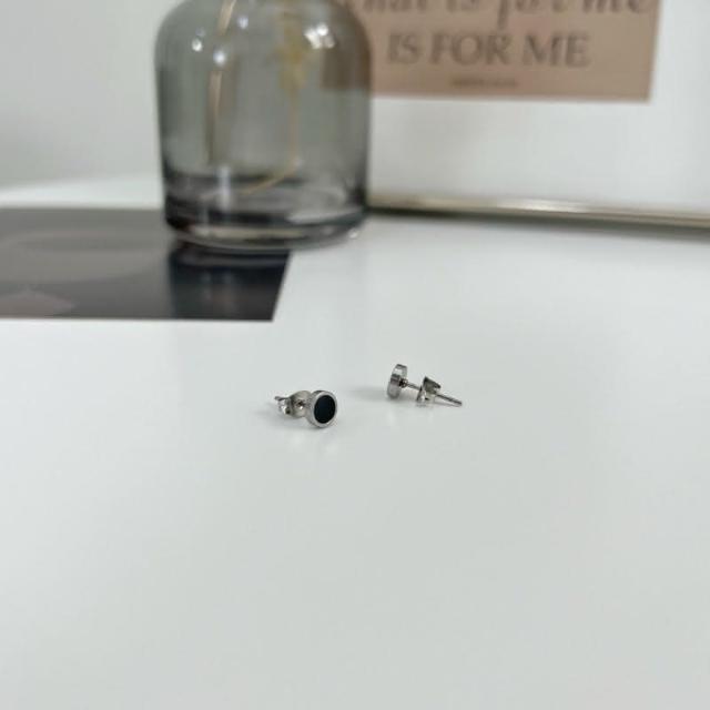現貨 實拍 迷你黑色 圓形 耳釘 鈦鋼 耳環 女 韓系 小耳環