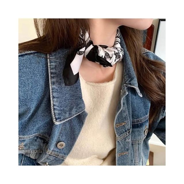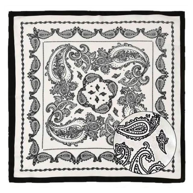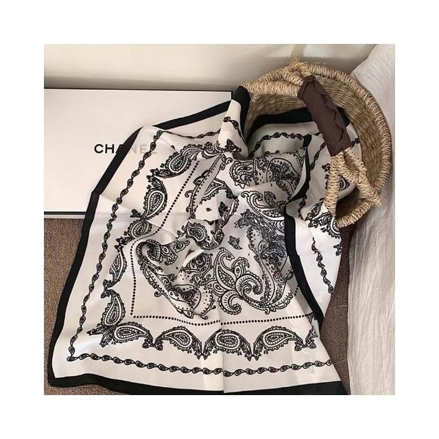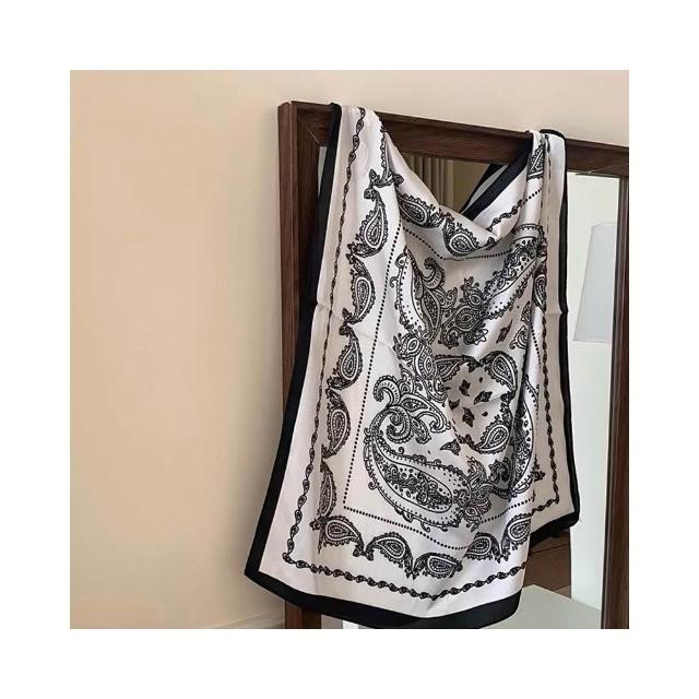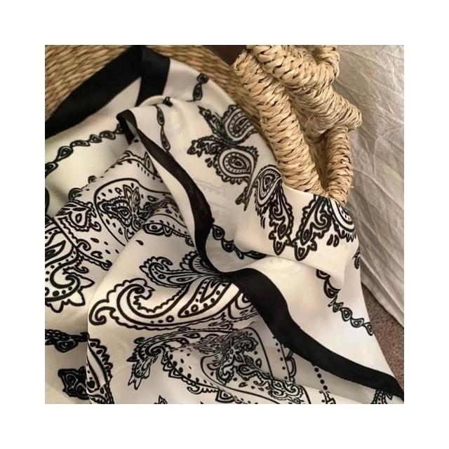 現貨 黑白拼色腰果花方巾 拼接 方巾 絲巾 頭巾 簡約 質感 領巾 髮帶 SA049
