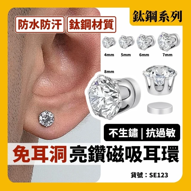 現貨 5size 無耳洞 磁吸式 亮鑽 耳釘 單鑽 耳環 磁鐵耳釘 男 女 耳夾 吸鐵 免耳洞